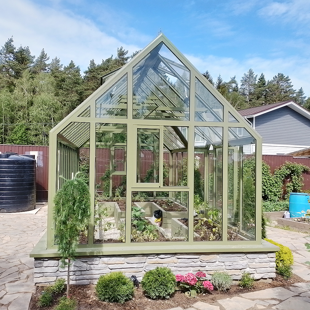 Английская теплица АСТЕРА Т-образной формы с тамбуром – это изысканное и функциональное решение для садоводов, ценящих красоту и урожайность. Сочетание классического дизайна и современных технологий позволяет создать идеальные условия для выращивания широкого спектра растений, от ранней рассады до экзотических культур. Размеры этой теплицы могут варьироваться в пределах ваших требований с учетом особенностей конструкции. Алюминиевый профиль 3 мм, стекло CLEAR FLOAT 5 мм.