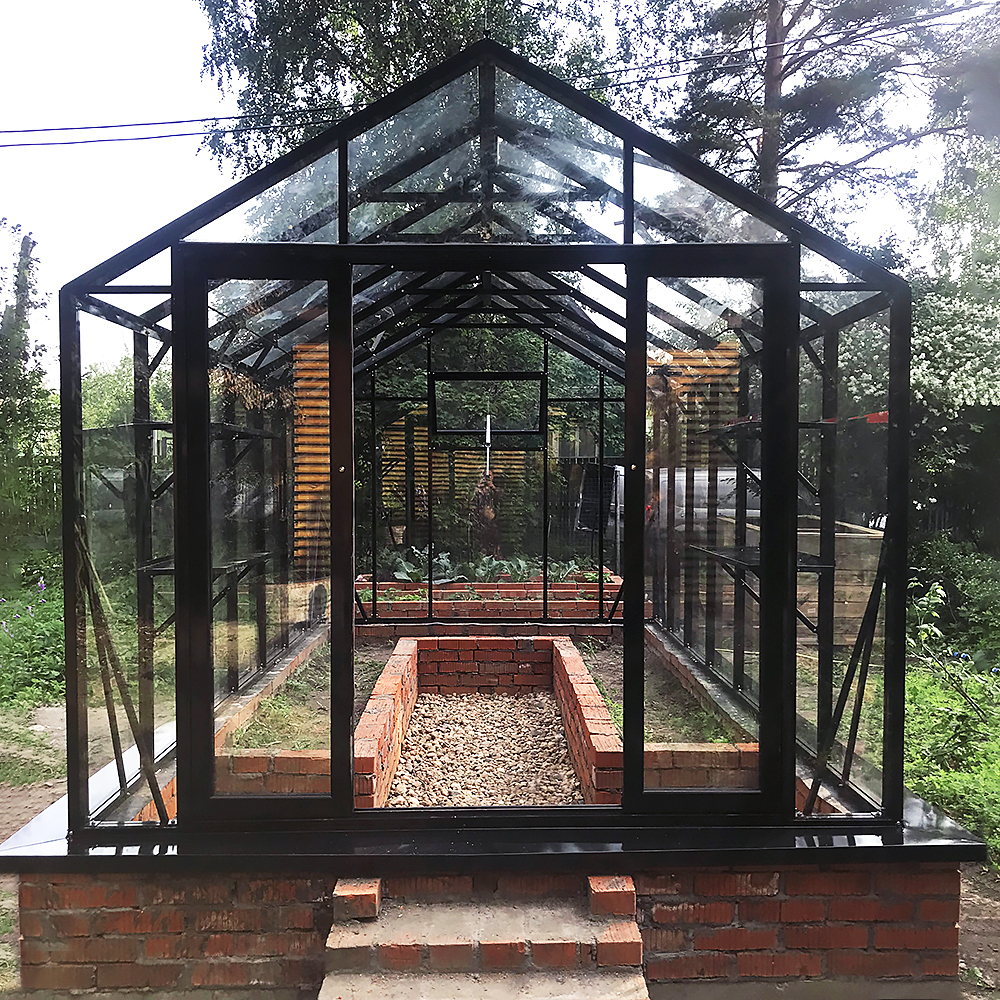 Модель BIONIKA Comfort с оптимальными размерами и достаточным внутренним объемом для комфортного выращивания любых садовых культур. В теплице можно разместить два ряда грядок с достаточно широким проходом. Подходит для установки на небольшие участки.