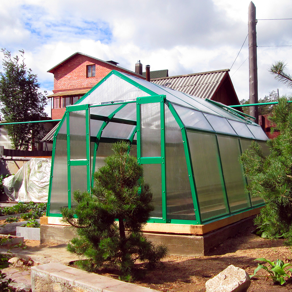 НАРВА – одна из самых компактных теплиц с поликарбонатом для выращивания помидоров, огурцов и перцев. Отличное решение для небольших дачных участков. При небольшой ширине, модель обладает достаточной высотой, благодаря чему конструкция приобретает визуальную легкость, а внутри создается ощущение простора.