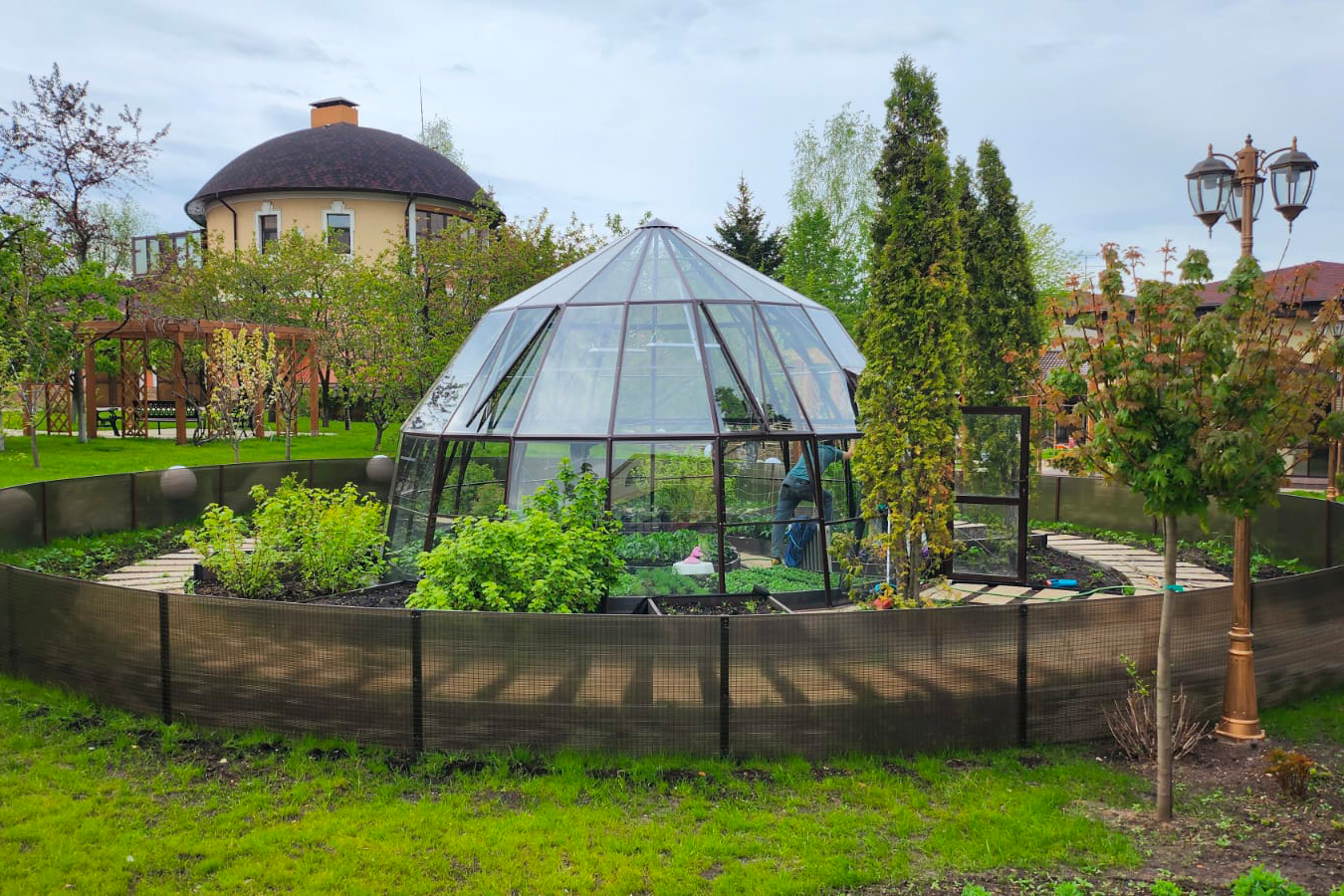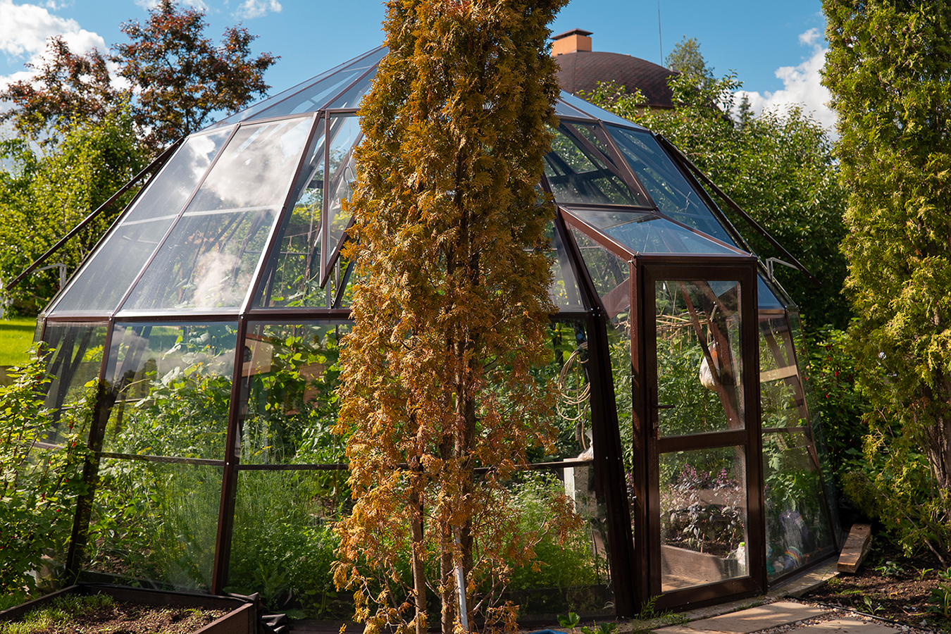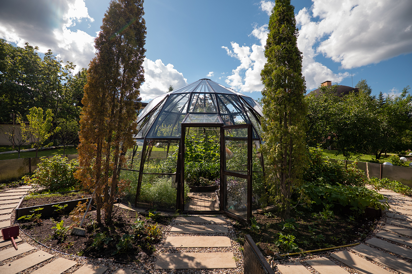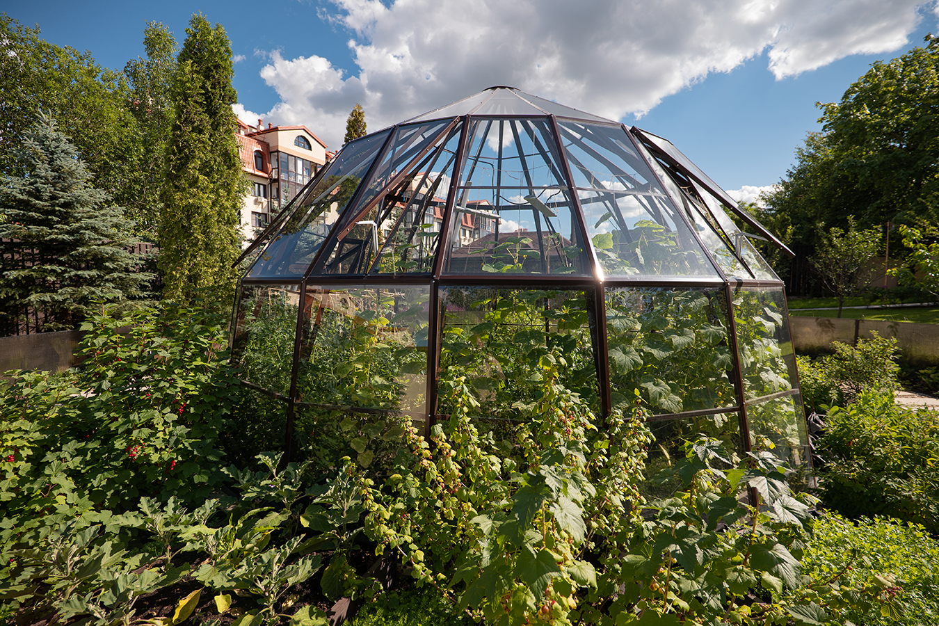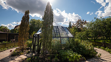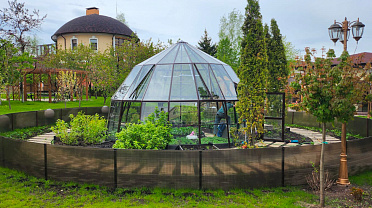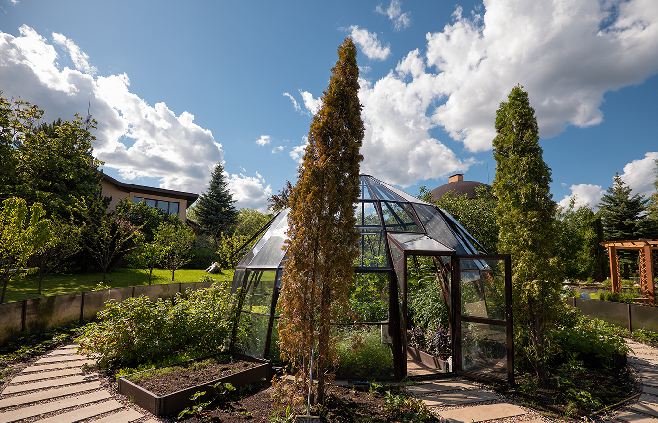Эксклюзивное решение с акцентом на пространство и архитектуру. Оранжерея формирует выразительную доминанту участка, объединяя функциональность и визуальную лёгкость, а продуманная геометрия создаёт ощущение масштаба и открытого объёма внутри.