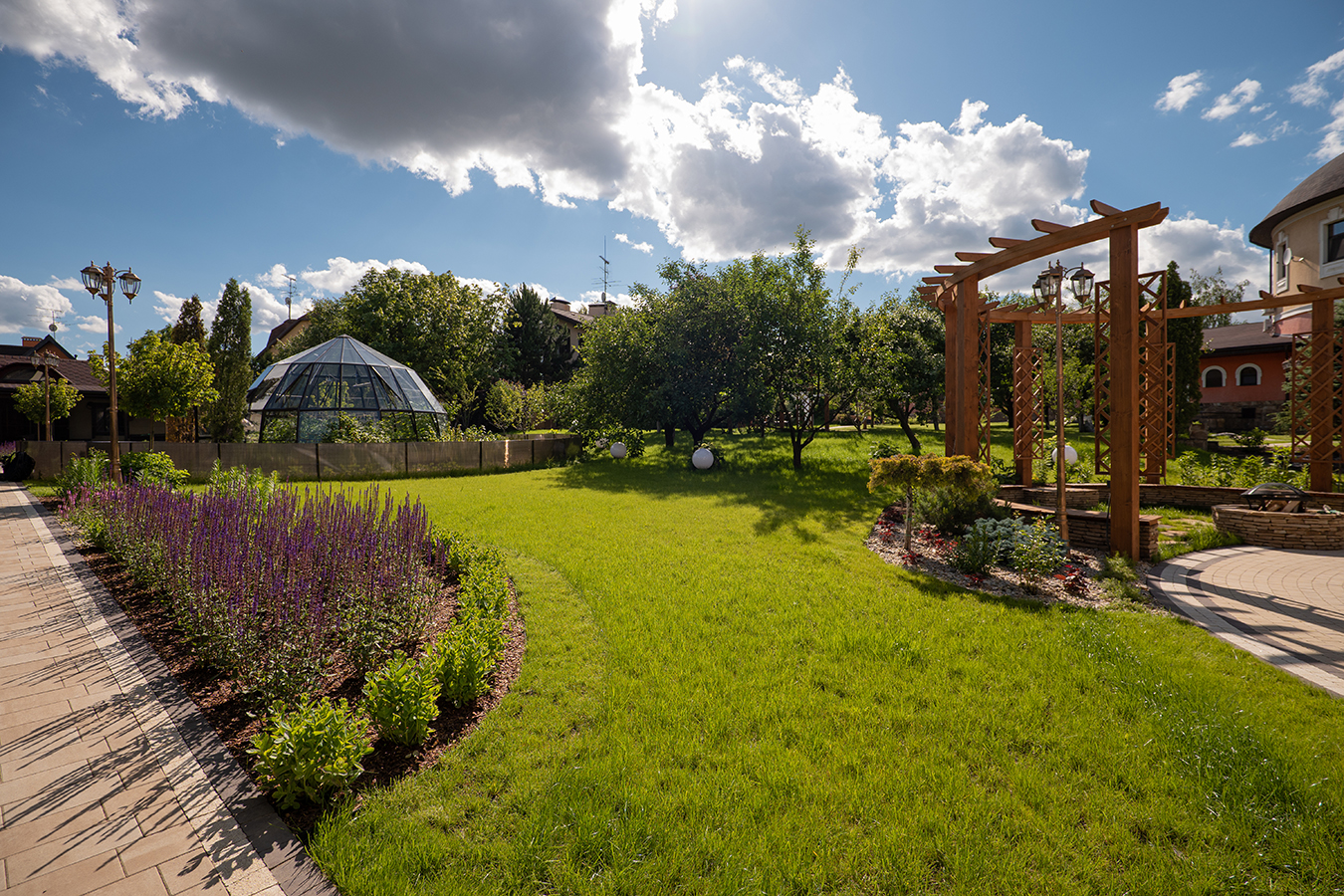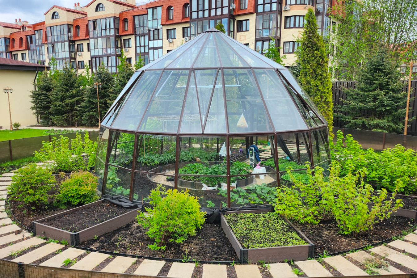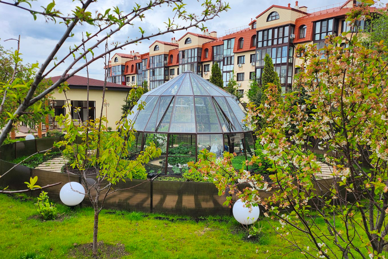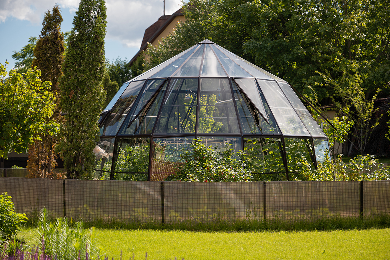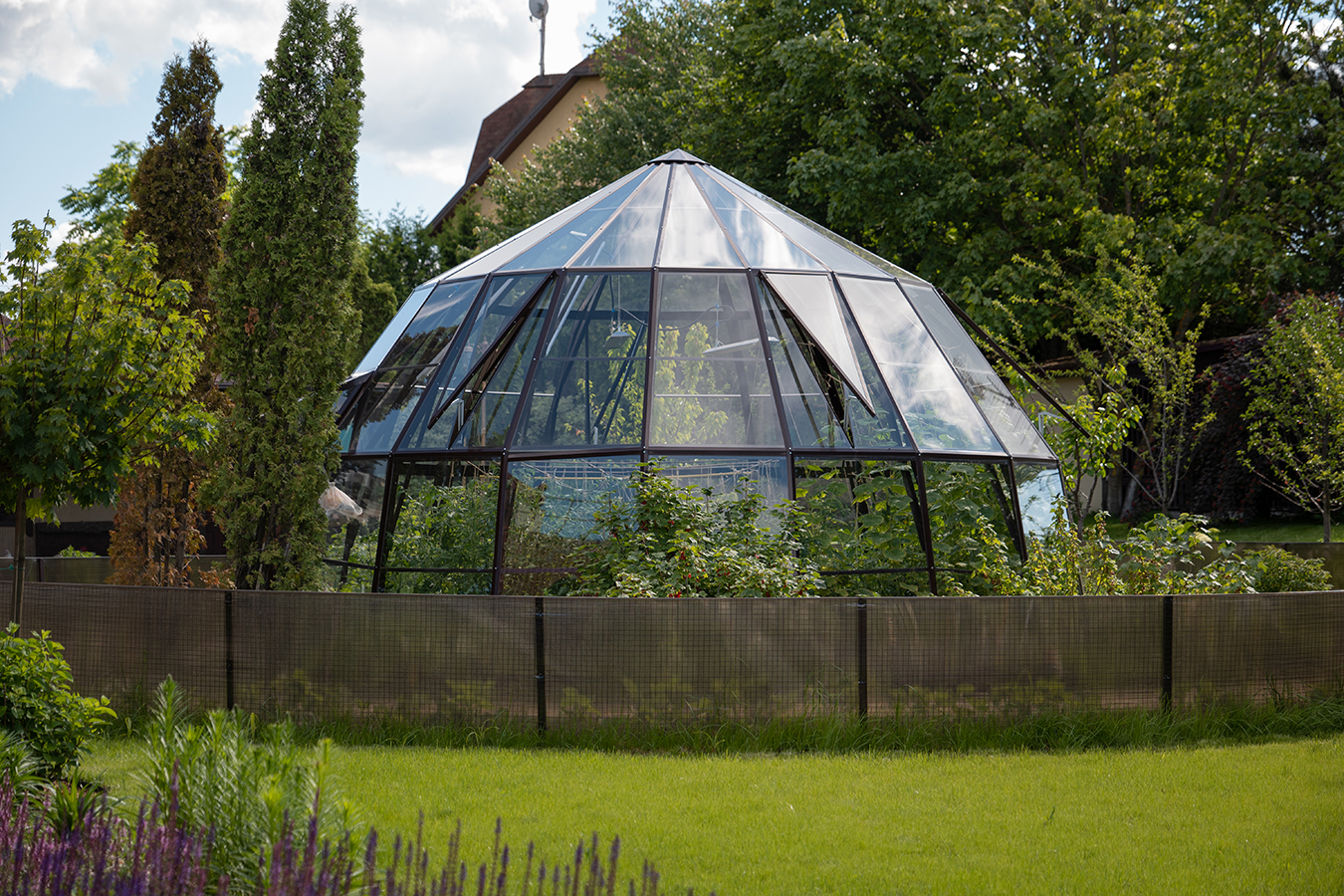 Эксклюзивное решение с акцентом на пространство и архитектуру. Оранжерея формирует выразительную доминанту участка, объединяя функциональность и визуальную лёгкость, а продуманная геометрия создаёт ощущение масштаба и открытого объёма внутри.