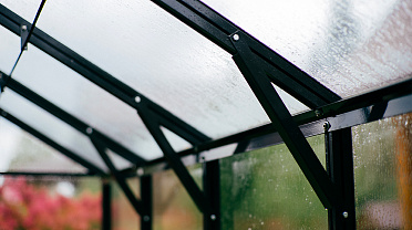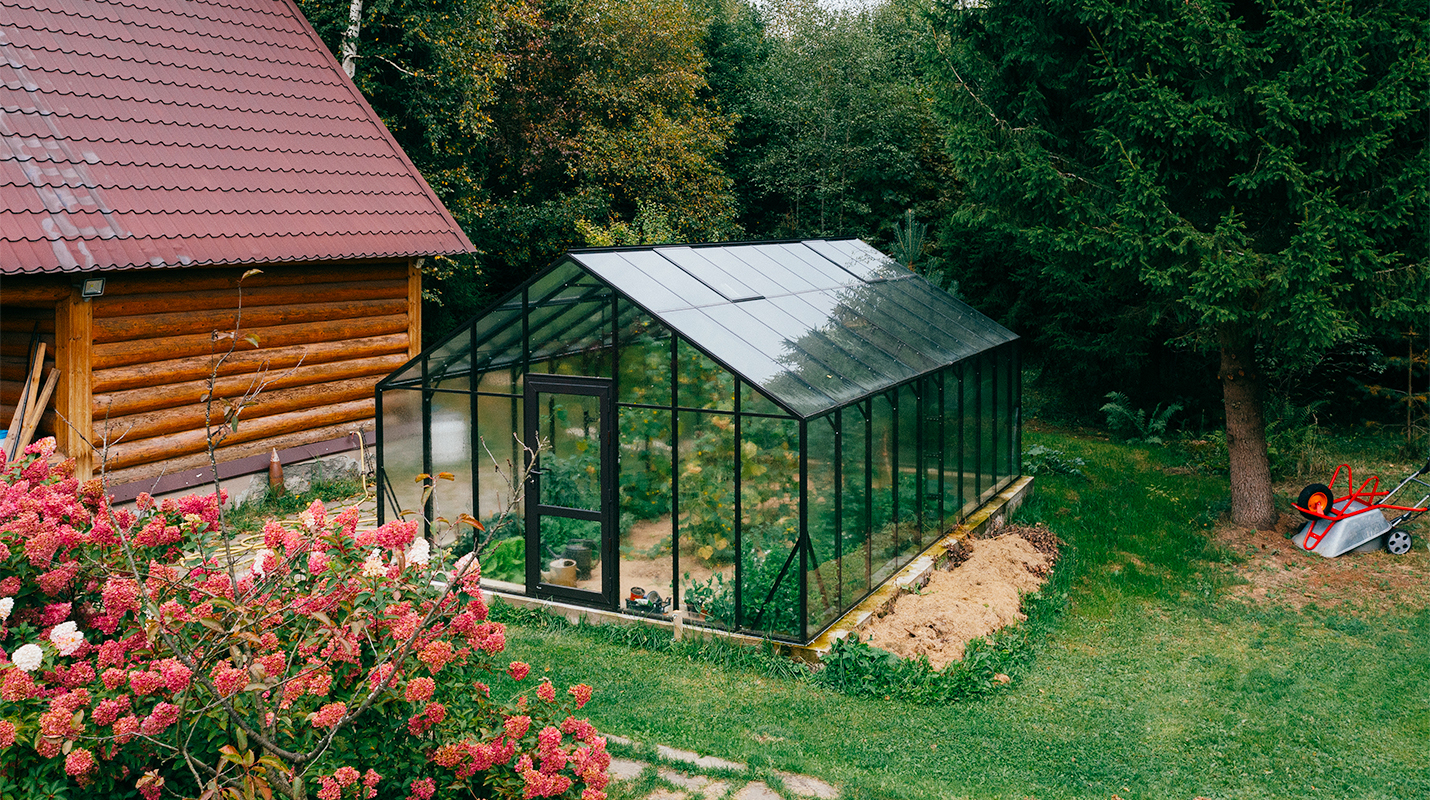 Лёгкая и воздушная архитектура создаёт ощущение открытого пространства, не перегружая участок. При этом увеличенный объём формирует полноценную среду внутри, делая теплицу выразительной доминантой и центром притяжения.