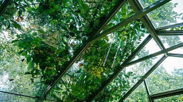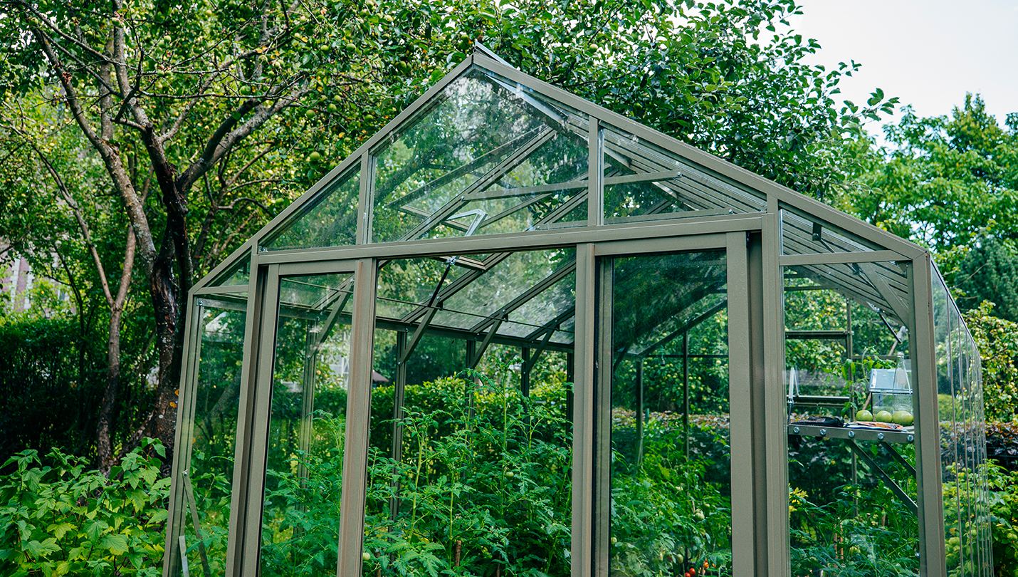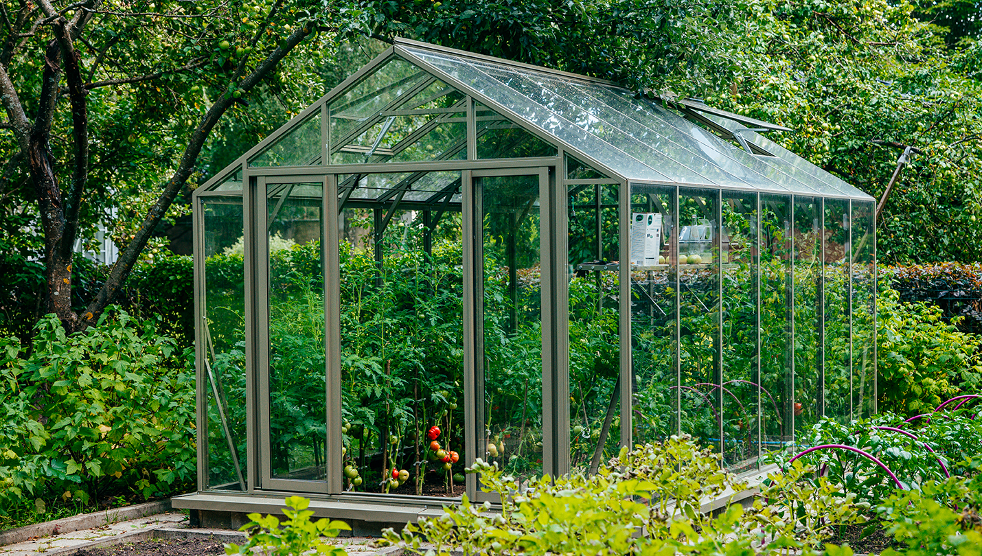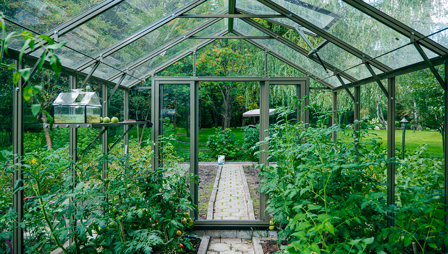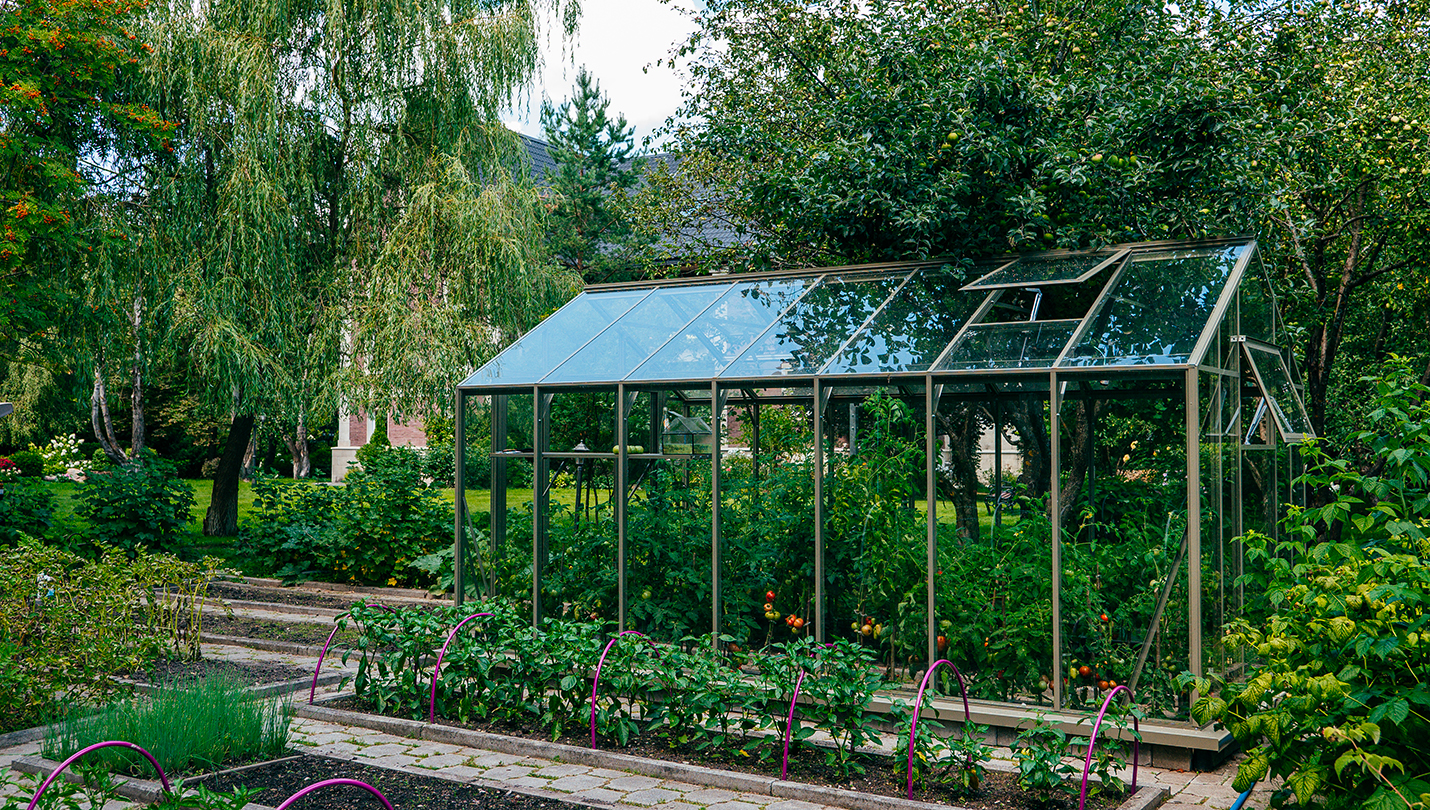 Теплица БИОНИКА Комфорт – выразительный акцент участка в природной цветовой гамме. Глубокий оливковый оттенок подчёркивает связь с ландшафтом, мягко интегрируя теплицу в окружение и создавая ощущение гармонии с природой.