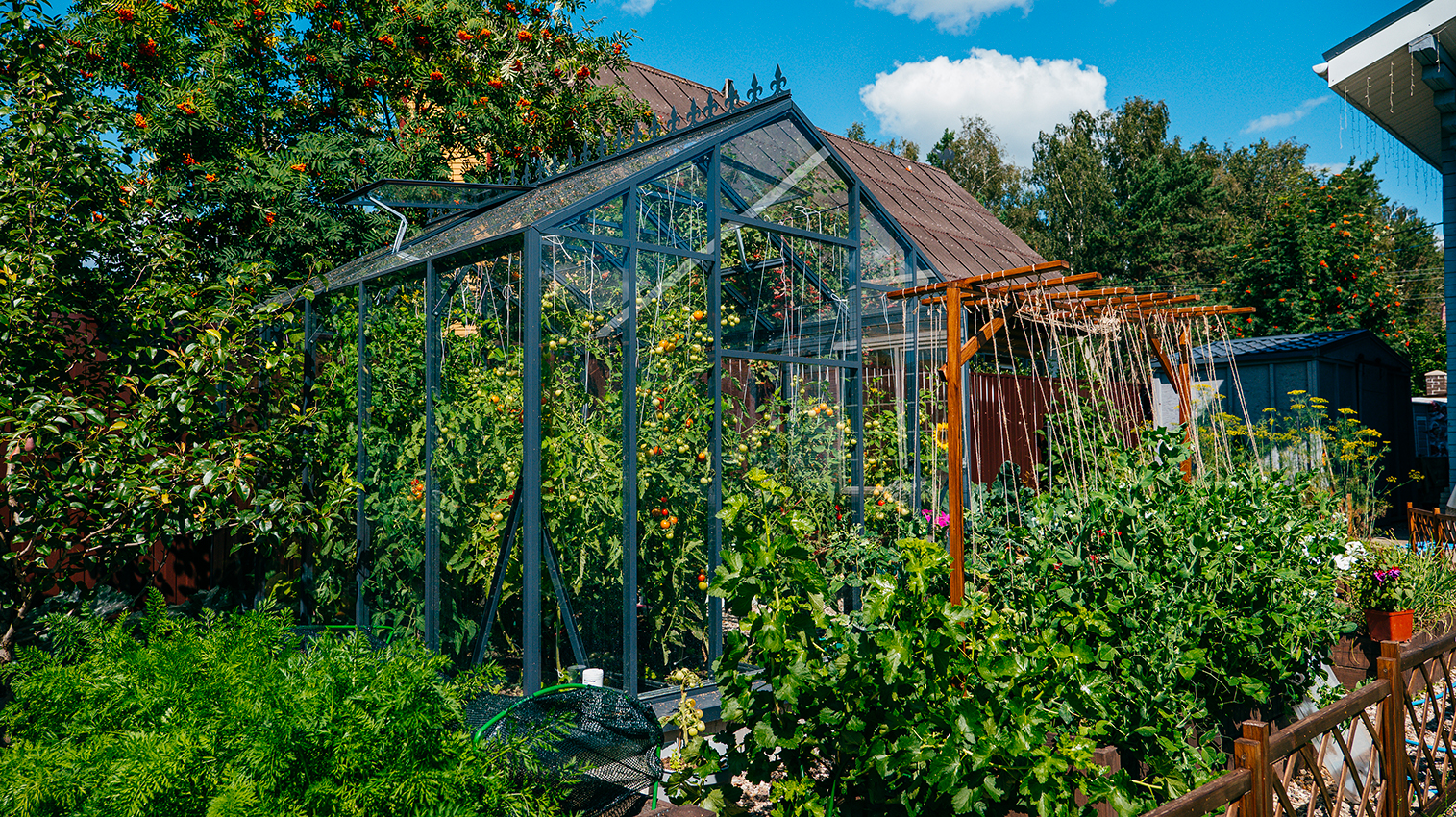 Боковая дверь обеспечивает более удобную организацию пространства и гибкость размещения на участке. Такое решение облегчает доступ и позволяет выстроить более логичную и комфортную схему работы внутри теплицы, что считается одним из ключевых преимуществ подобных конструкций.