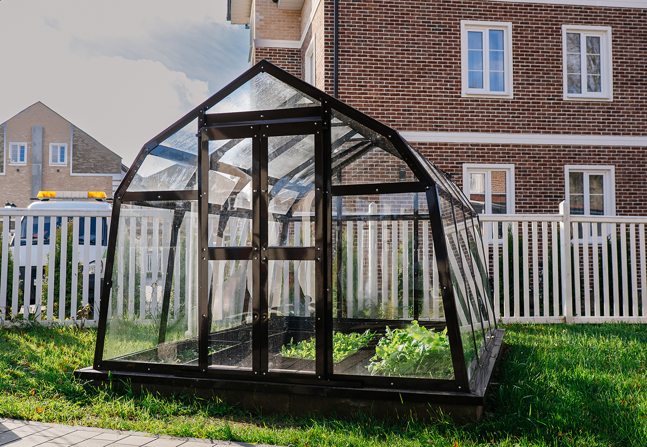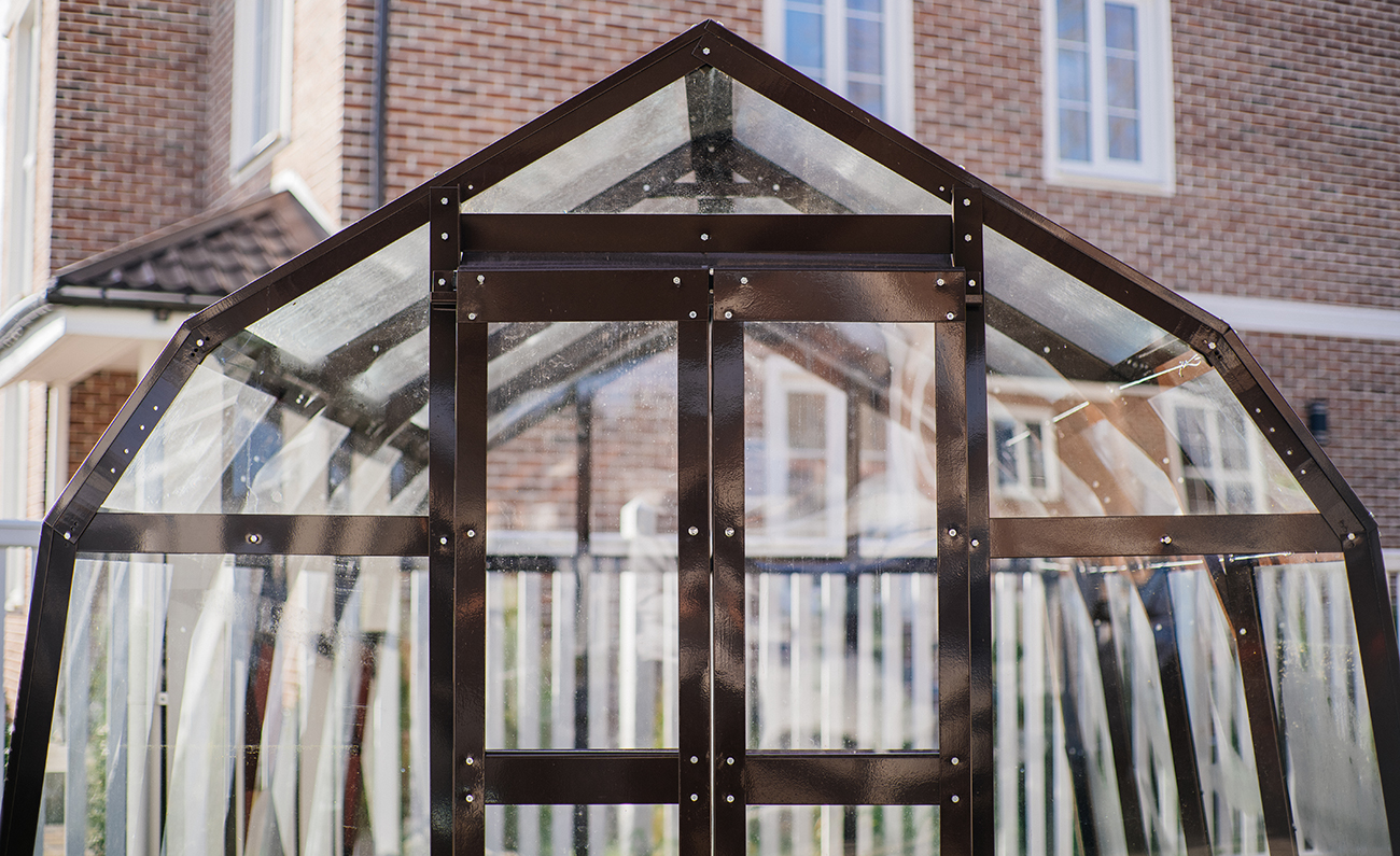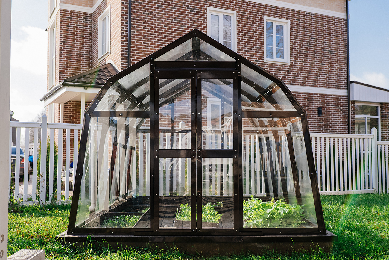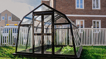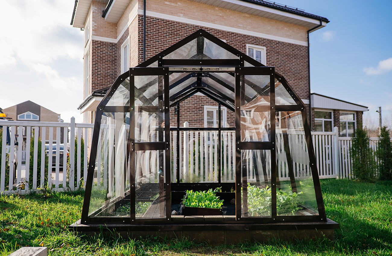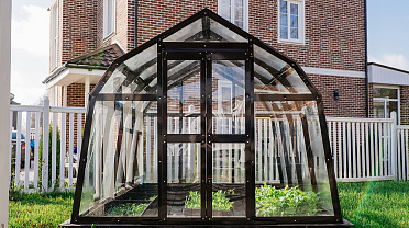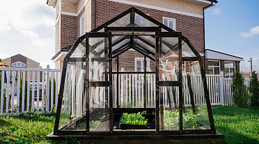Компактное решение с продуманным внутренним объёмом. Несмотря на аккуратные размеры, внутри сохраняется комфорт и пространство для работы с растениями, что делает модель удобной для небольшого участка или дачи.