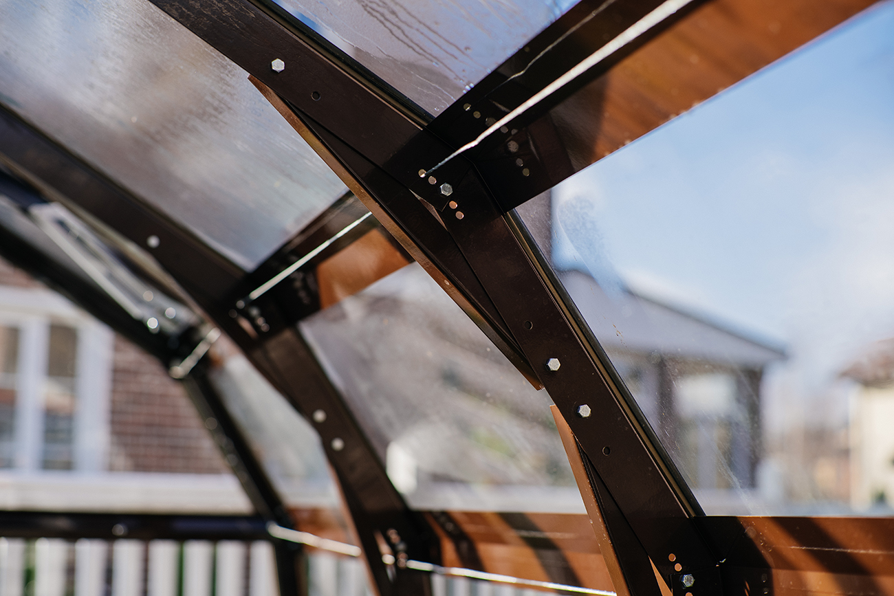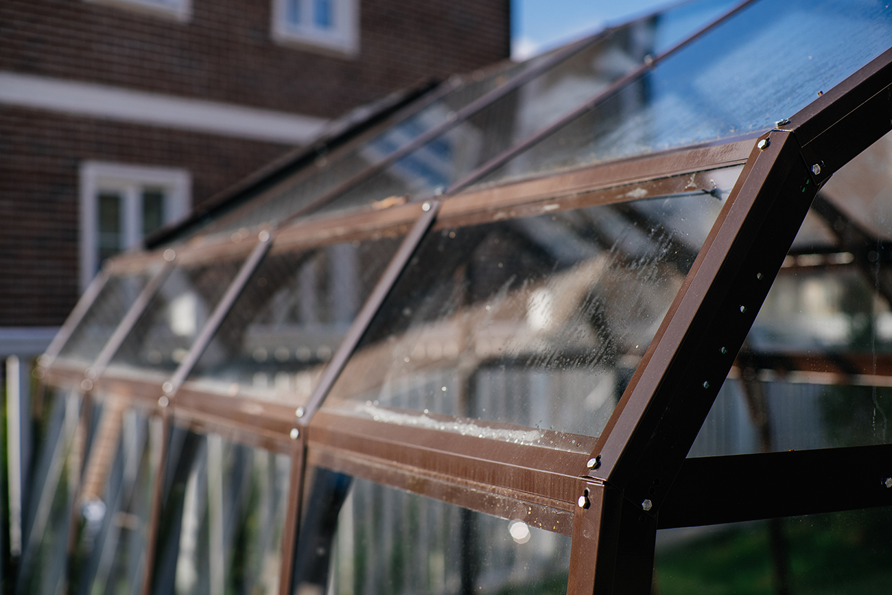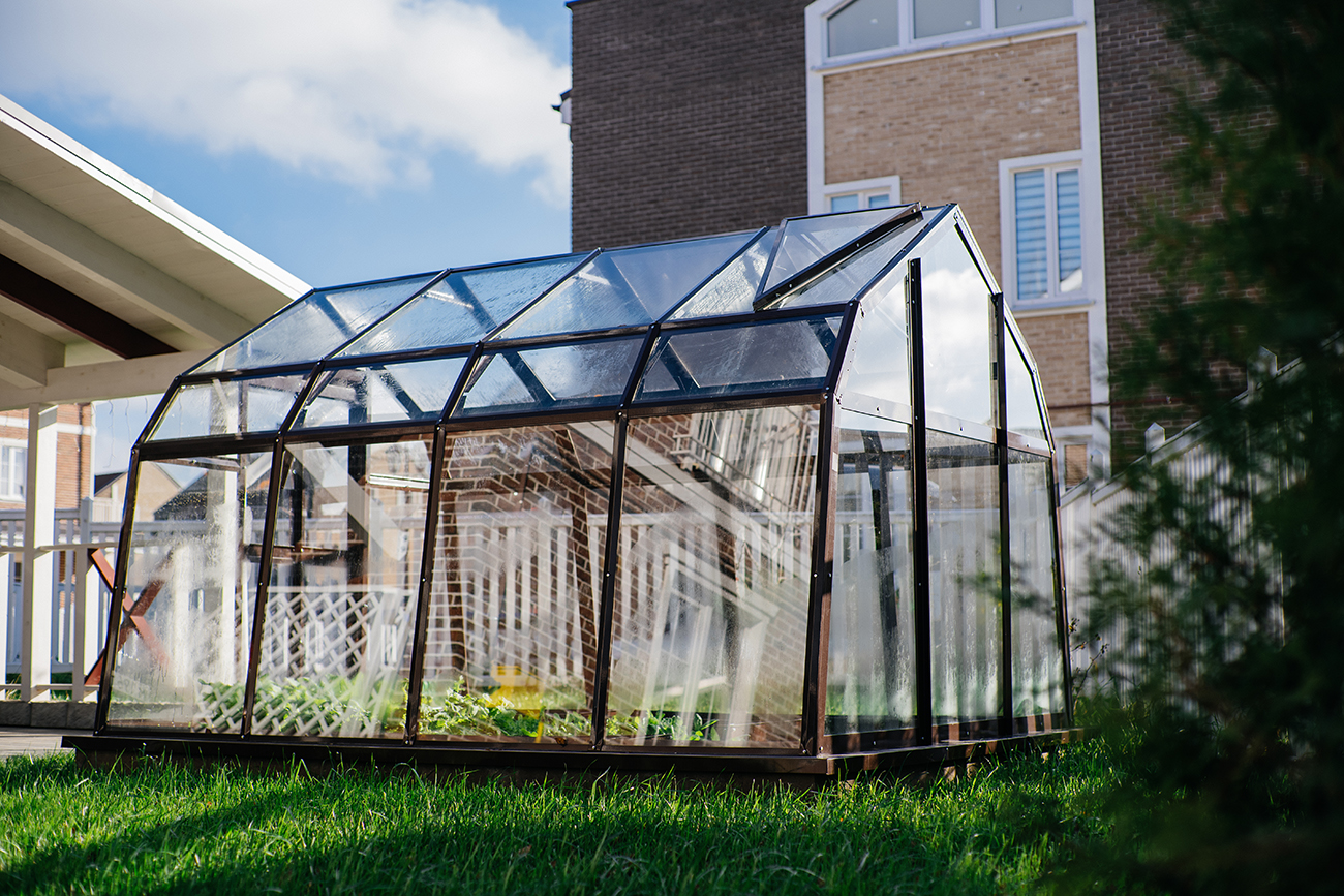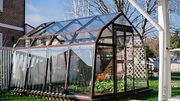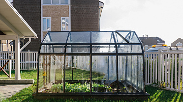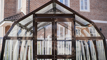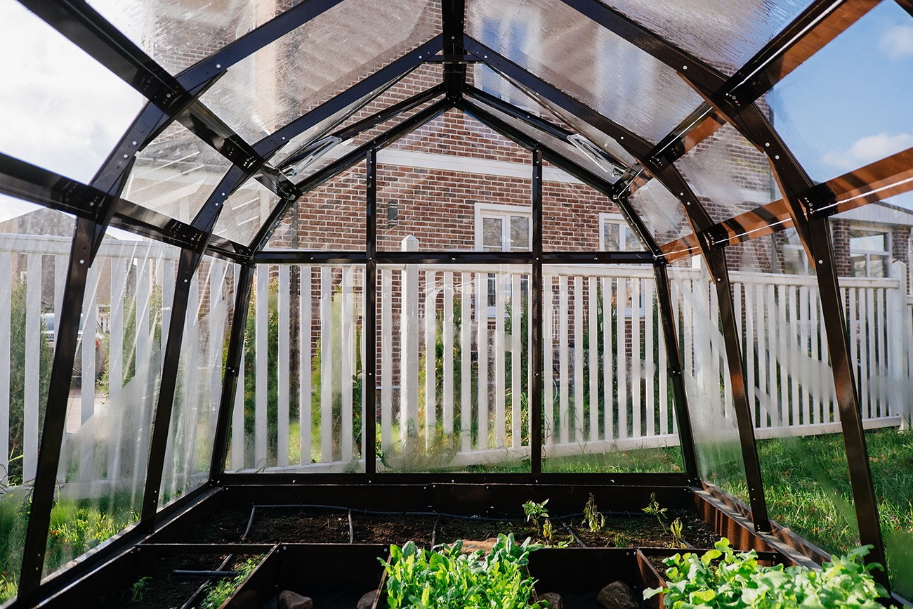 Компактное решение с продуманным внутренним объёмом. Несмотря на аккуратные размеры, внутри сохраняется комфорт и пространство для работы с растениями, что делает модель удобной для небольшого участка или дачи.