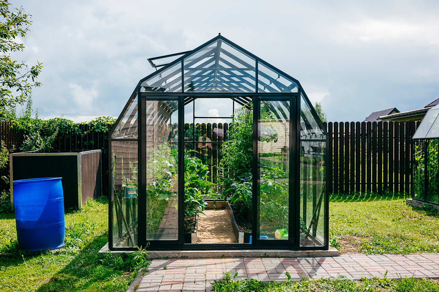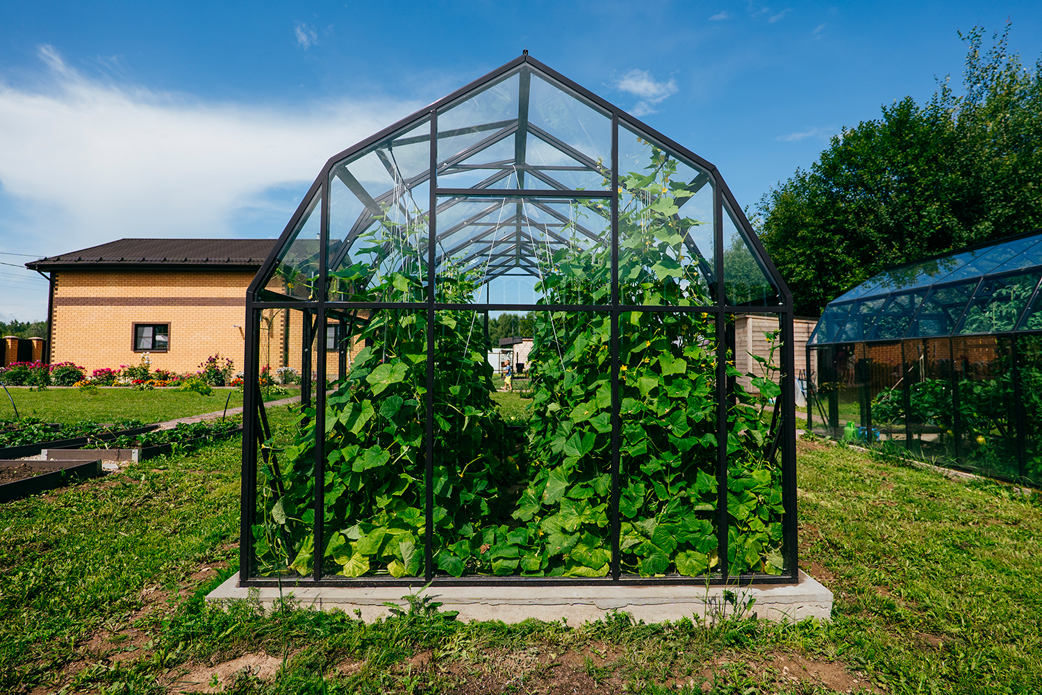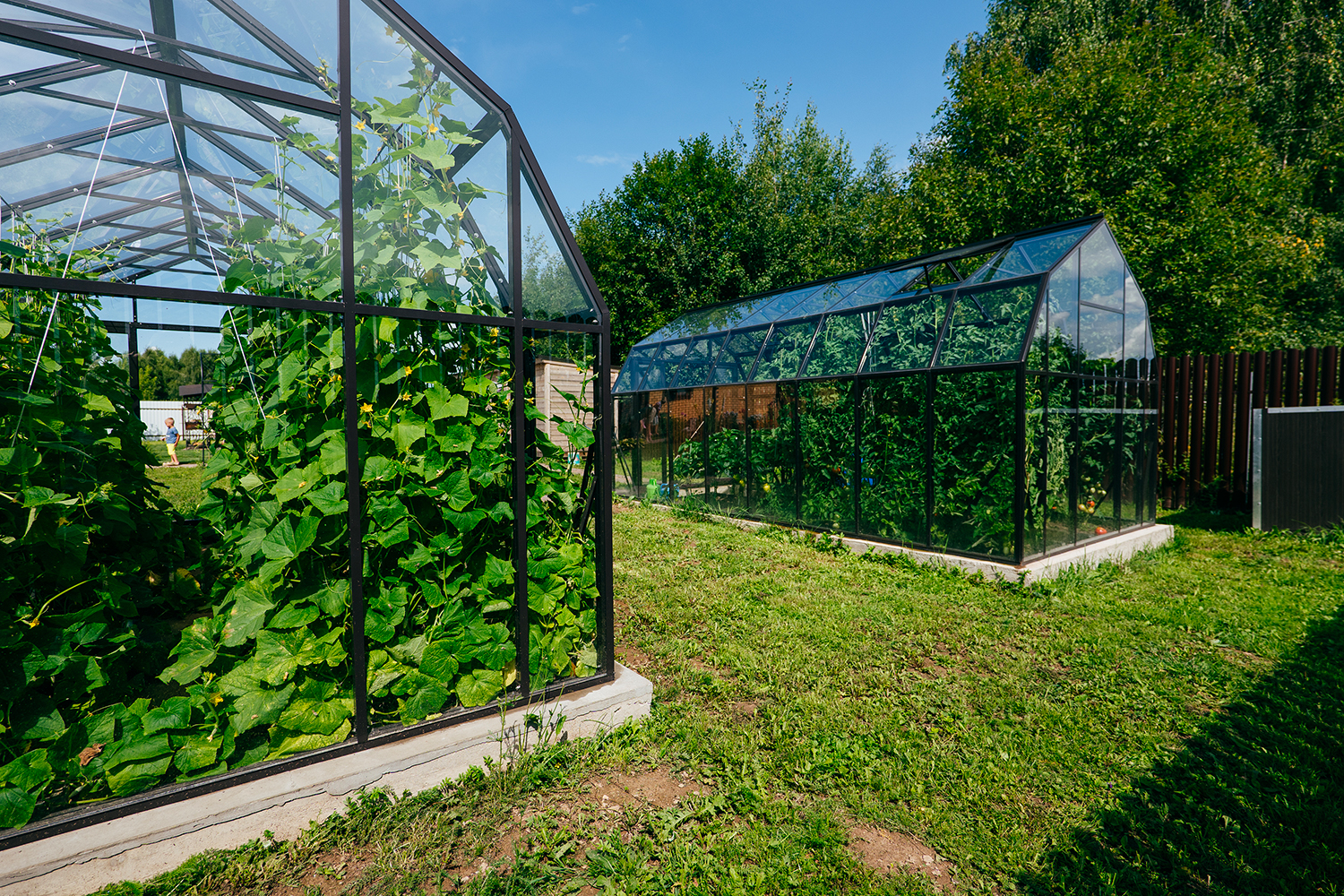 Две теплицы КРИСТАЛИКА Классик – выверенная архитектура и уверенная конструкция. Чёткая геометрия формирует гармоничную композицию на участке, а продуманное решение обеспечивает стабильность и надёжность в эксплуатации.